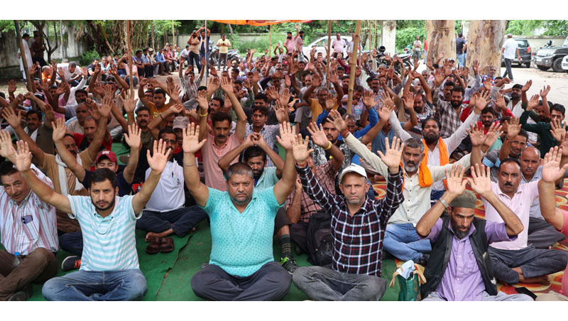 JAMMU, July 10: The daily wagers of the Power Development Department (PDD) continued their protest and hunger strike, intensifying pressure on the authorities to act on their long-pending demands. Despite sustained agitation, the Government has so far failed to respond, further fueling resentment among the protesting workers.