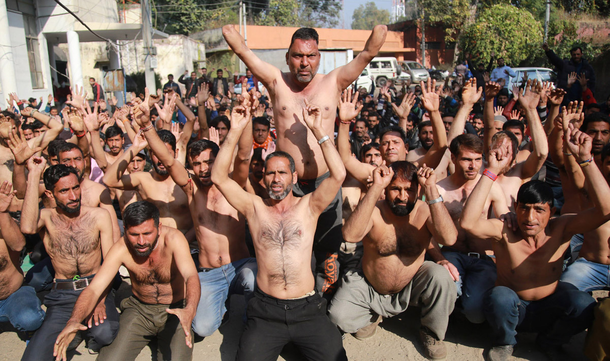PDD Need Based Casual Workers during a protest demonstration at Jammu on Friday. -Excelsior/Rakesh