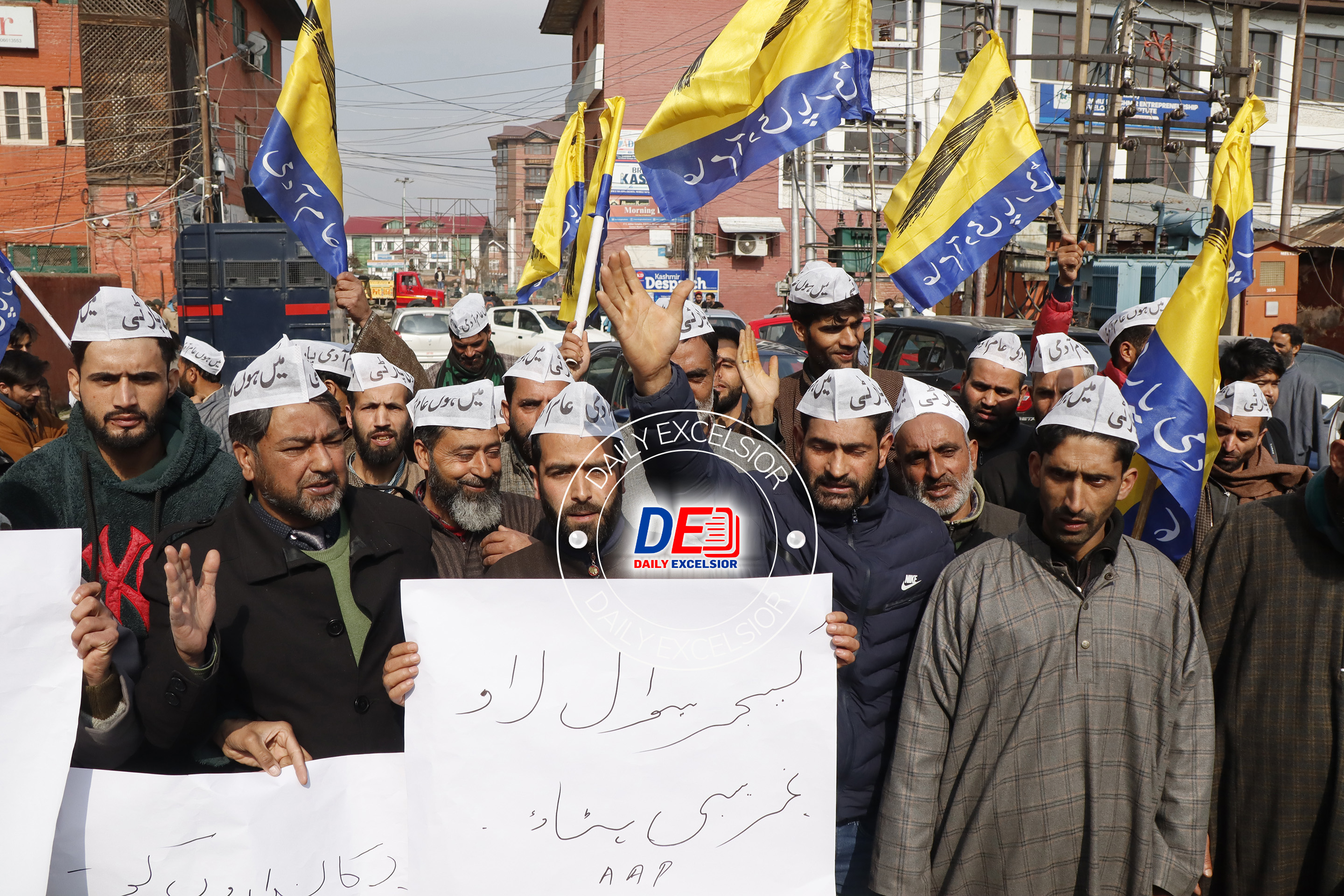 Srinagar, Feb 7: The Peoples Democratic Party (PDP) and the Aam Aadmi Party (AAP) on Tuesday held demonstrations against the ongoing anti-encroachment by the Jammu and Kashmir administration.