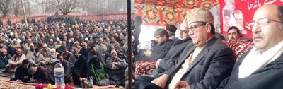 National Conference leaders at a party convention at Bandipora on Thursday.