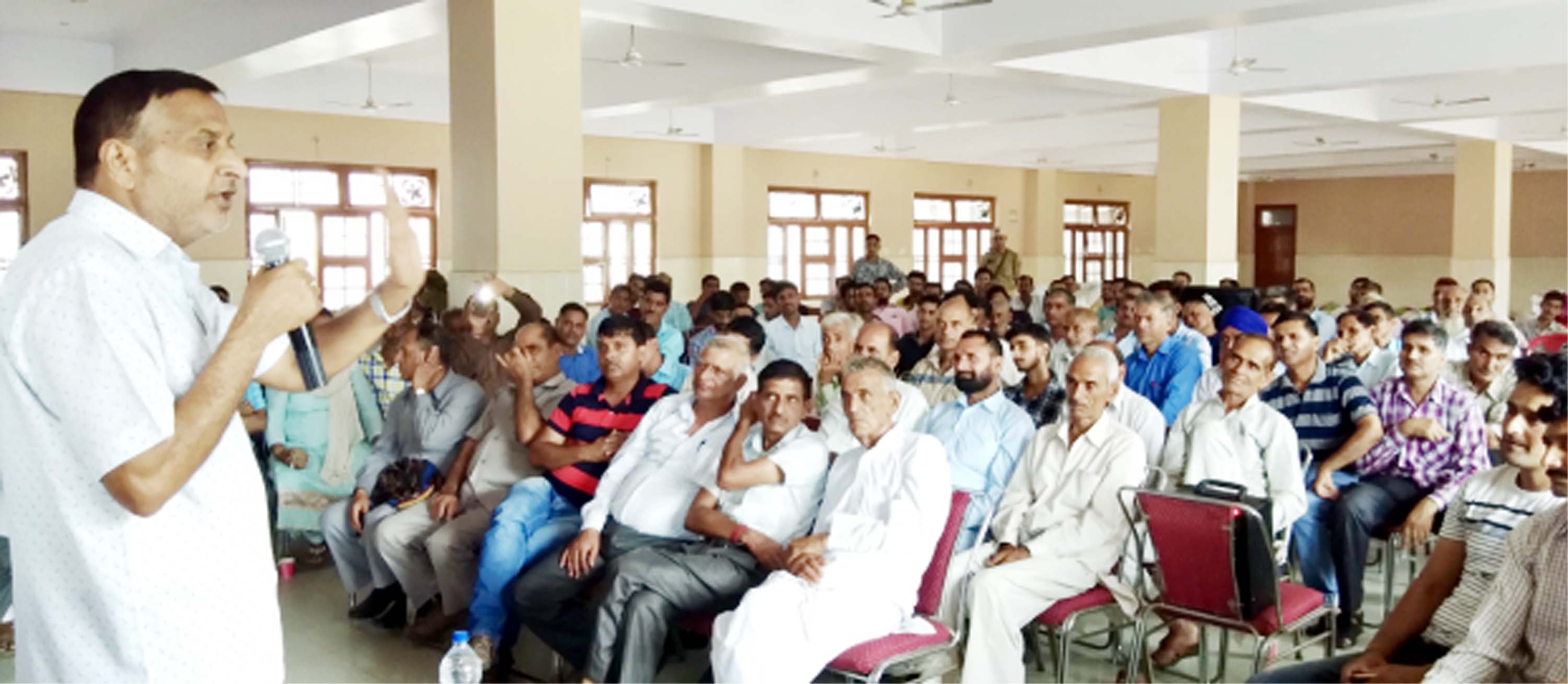 JAMMU, June 28: Former minister and Congress leader Sham Lal Sharma addressed meeting of active members of Panchayat Rah and Salyote.