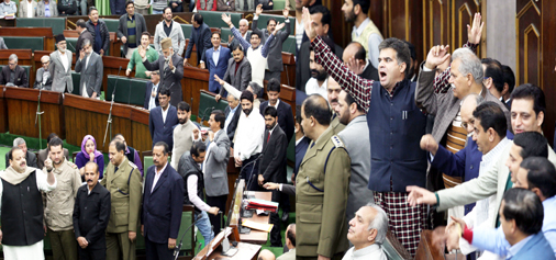 Some of the National Conference members including Devender Singh Rana and Independent MLA Pawan Gupta trooped into Well of the House. Trying to expose PDP-BJP differences on the issue, Rana demanded that let the Chief Minister (Mehbooba Mufti) brings a resolution. There were heated exchanges between BJP and Opposition NC and Congress members a number of times, leading to slogan and counter sloganeering prompting the Speaker to adjourn the House for 10 minutes to restore order.