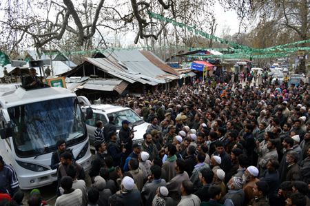 PDP patron Mufti Mohammad Sayeed addressing an election rally at Anantnag on Sunday.
