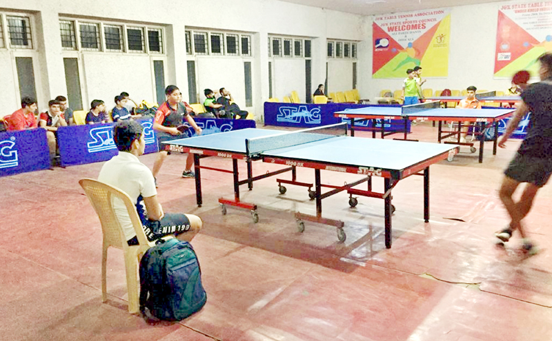 Peddlers in action during Jammu district TT Championship at Indoor Complex, M A Stadium in Jammu on Thursday.