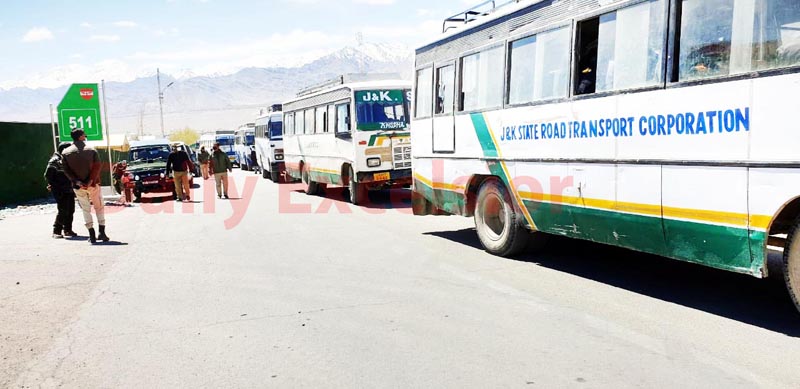 People being sent to Kargil from Leh in SRTC buses after airlifting on Friday. -Excelsior/ Morup Stanzin By Daily Excelsior - April 25, 2020 Share FacebookTwitterWhatsAppPinterestLinkedinCopy URLTelegramEmailTumblrReddItPrintKoo People being sent to Kargil from Leh in SRTC buses after airlifting on Friday. -Excelsior/ Morup Stanzin People being sent to Kargil from Leh in SRTC buses after airlifting on Friday. -Excelsior/ Morup Stanzin Follow our WhatsApp channel