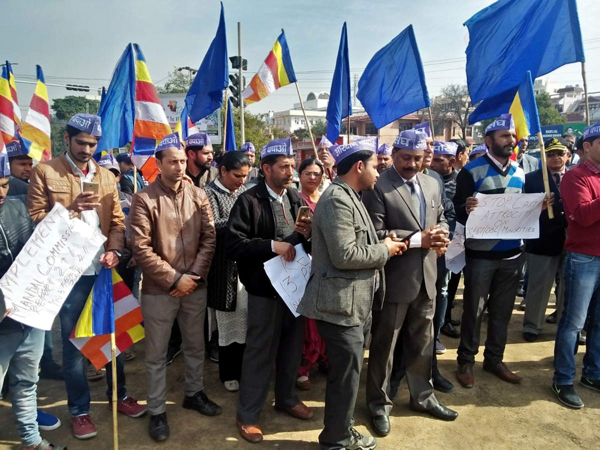 People belonging to SC, ST and OBC categories staging protest at Ambedkar Chowk in Jammu. By Daily Excelsior - February 11, 2019 Share FacebookTwitterWhatsAppPinterestLinkedinCopy URLTelegramEmailTumblrReddItPrintKoo People belonging to SC, ST and OBC categories staging protest at Ambedkar Chowk in Jammu. People belonging to SC, ST and OBC categories staging protest at Ambedkar Chowk in Jammu. Follow our WhatsApp channel