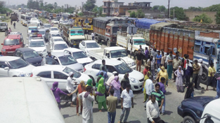 The irate people including men, women and children shouting slogans against the Government squatted on the road and blocked the NH for one hour in protest against the power and water crisis in the area.