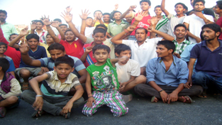 The protestors raising slogans came on National Highway this evening and blocked it for half an hour in protest against the callousness of PDD.