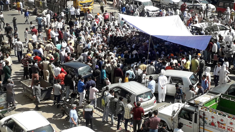 Family members and relatives of the deceased protested and blocked Jammu -Pathankot National Highway at Main Chowk, Vijaypur today. According to the information received, Sahil Chaudhary, son of Kishan Chand, resident of Vijaypur, was beaten and thrown into an injured condition by some youth from Supwal village on March 24, and the locals brought him to Vijaypur Accidental Hospital for treatment. Father of the injured, Kishan Chand went to see his son in the hospital on March 30 and when he came back he met with an accident with a car. He was shifted to GMC Jammu in critical condition. After two days of treatment he succumbed to his injuries. Click here to watch video
