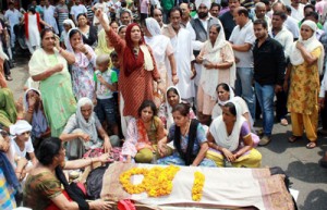 Meanwhile, the parents, relatives and large number of people along with the dead body of the deceased assembled near Gurah Morh in Bakshi Nagar this morning and staged protest.