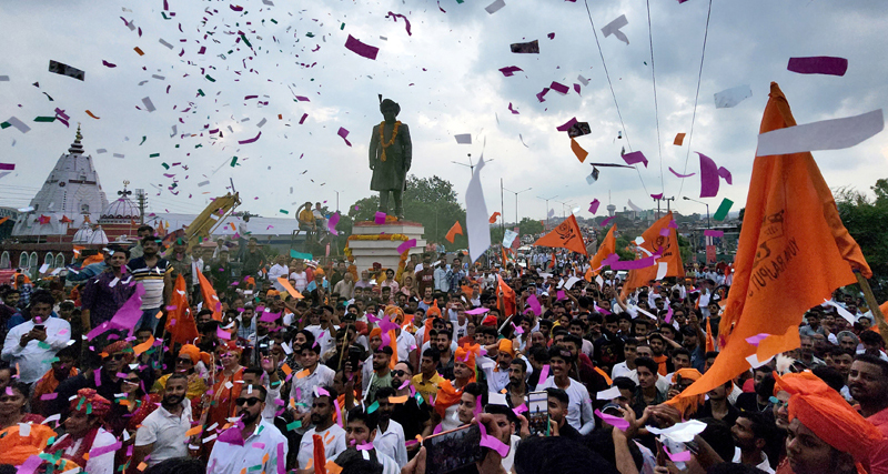 People gather in large numbers at Tawi bridge in Jammu to celebrate birthday of Maharaja Hari Singh on Friday. —Excelsior/Rakesh