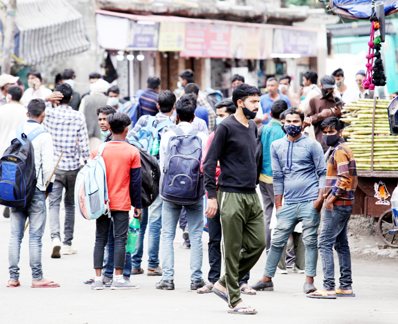 No social distancing at General Bus Stand Jammu. —Excelsior/Rakesh