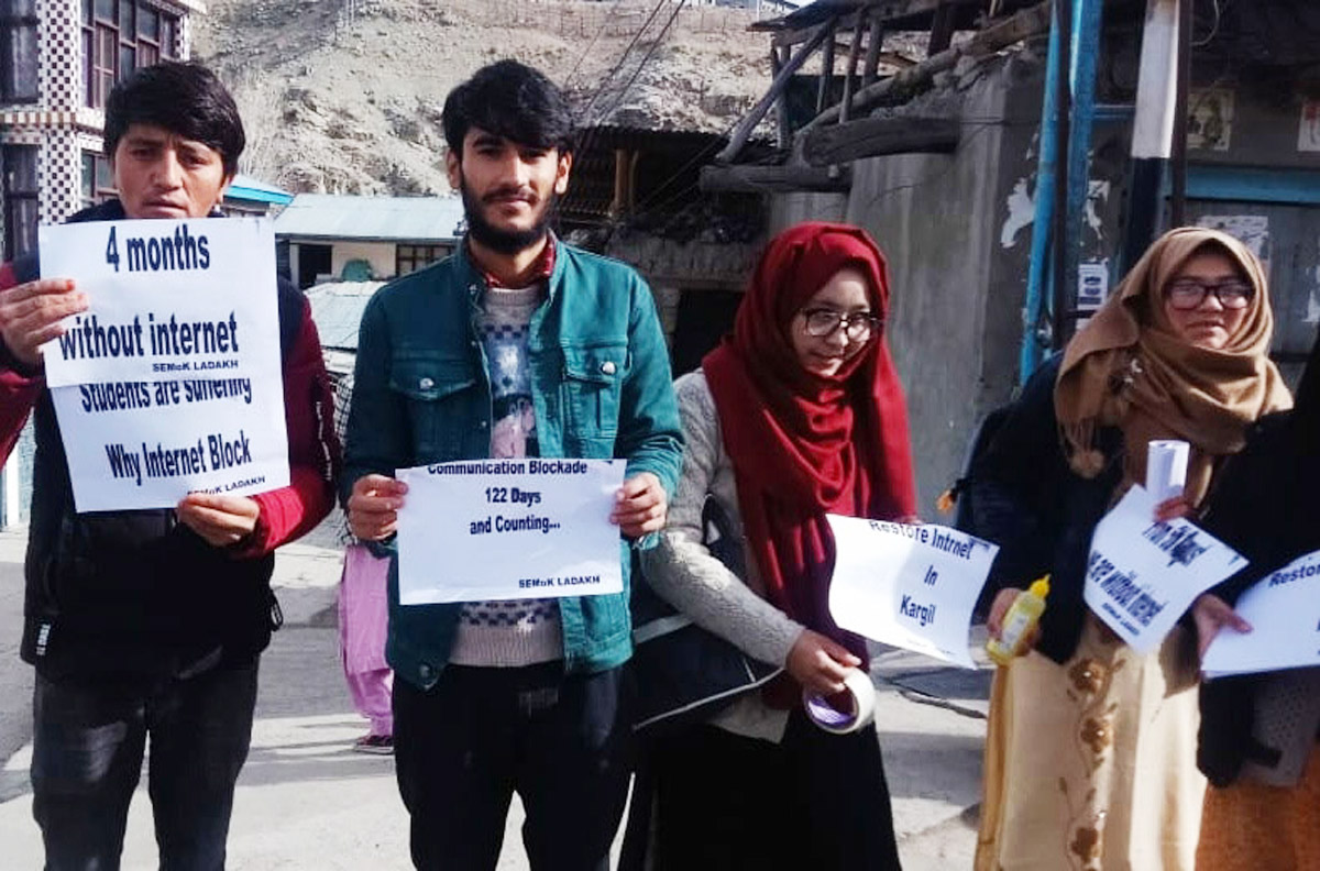 KARGIL, Nov 27: People particularly the student community held protest against the non-availability of internet services for the past four months.
