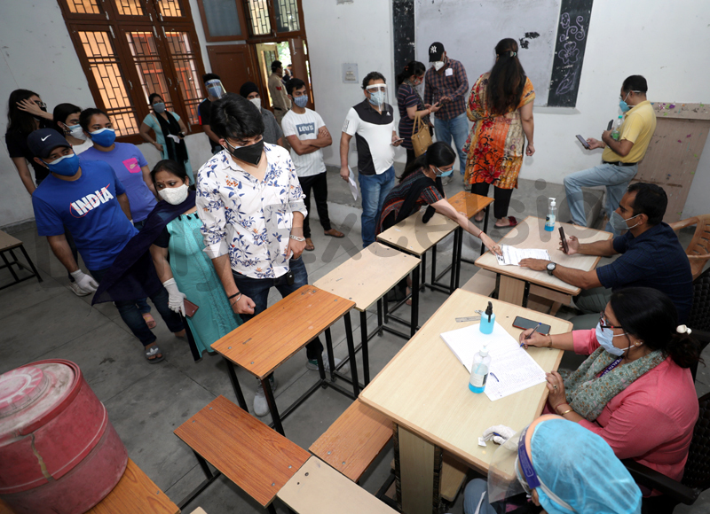 People maintain social distancing as they wait for their turn to get vaccination in Jammu on Tuesday. — Excelsior/Rakesh By Daily Excelsior - May 26, 2021 Share FacebookTwitterWhatsAppPinterestLinkedinCopy URLTelegramEmailTumblrReddItPrintKoo People maintain social distancing as they wait for their turn to get vaccination in Jammu on Tuesday. — Excelsior/Rakesh People maintain social distancing as they wait for their turn to get vaccination in Jammu on Tuesday. — Excelsior/Rakesh Follow our WhatsApp channel