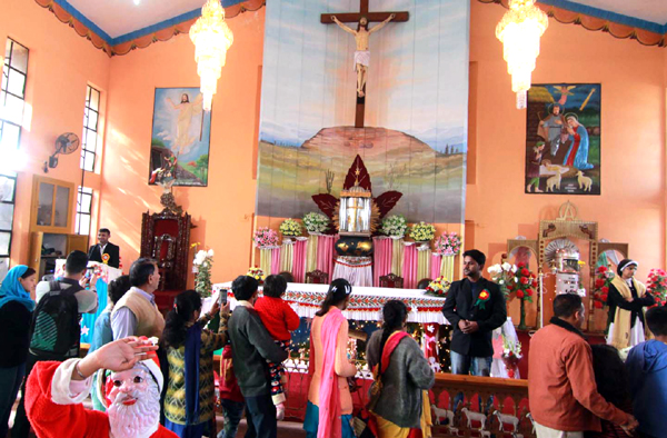People offering prayers in St Peter’s Garrison Church at Gandhi Nagar. —Excelsior/Rakesh