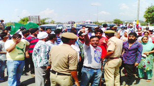 People & parents of sportspersons raising slogans against Government and DYSS during protest at Jammu on Monday.     -Excelsior/ Rakesh