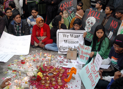 People pay tributes to gang-rape victim at Jantar Mantar in New Delhi on Sunday.(UNI)