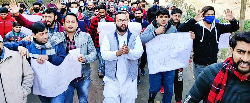 The protest was organized under the leadership of former national president NSUI and Congress leader Fairoz Khan. The protesters assembled at Maitra Chowk and amidst raising of slogans against PDD, marched towards DC office Ramban where they submitted a memorandum to Lt Governor Manoj Sinha through DC Ramban.