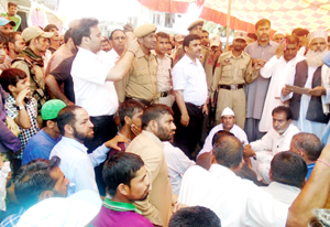 MENDHAR, July 15: As the township of Mendhar, besides Harni and Gursai were without power supply for the past 24 hours, the local people, irrespective of party affiliation and Beopar Mandal members held strong protest demonstration and staged dharna on Mendhar-Jammu road at main chowk here today.