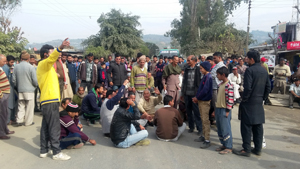 The protesters also blocked the vehicular movement on the Mansar road, leading to long traffic snarls.