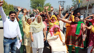 The protesters alleged that the Sarpanch Gharu Ram and Panch Jangi are trying to grab the temple land and in this matter the police are also extending support to them.