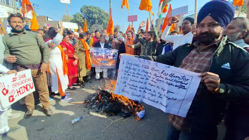 People protesting against attacks on minorities in Bangladesh at Kathua on Monday. -Excelsior/Pardeep