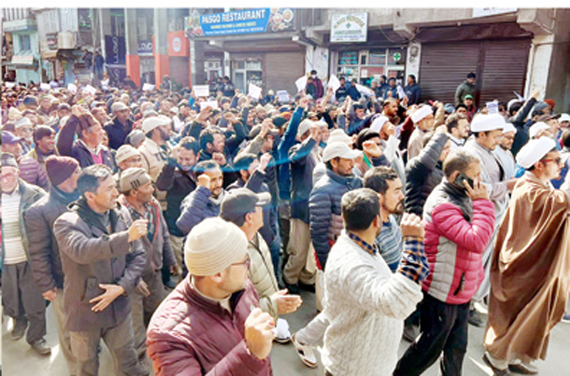 People protesting in Kargil on Wednesday. — Excelsior/Basharat Ladakhi By Daily Excelsior - November 3, 2022 Share FacebookTwitterWhatsAppPinterestLinkedinCopy URLTelegramEmailTumblrReddItPrintKoo People protesting in Kargil on Wednesday. — Excelsior/Basharat Ladakhi People protesting in Kargil on Wednesday. — Excelsior/Basharat Ladakhi Follow our WhatsApp channel