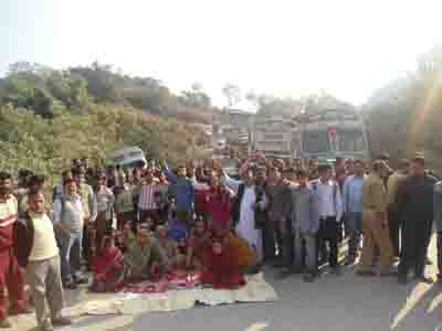The villagers started shouting slogans against R&B Minister and the Chief Engineer concerned. The people also raised slogans against the district administration. A large number of trucks, buses and other vehicles remained stranded on either side of the road for about two hours from 9 to 11 am.
