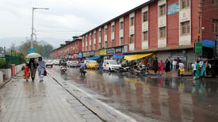 People walk with umbrellas during rain in Srinagar on Wednesday.