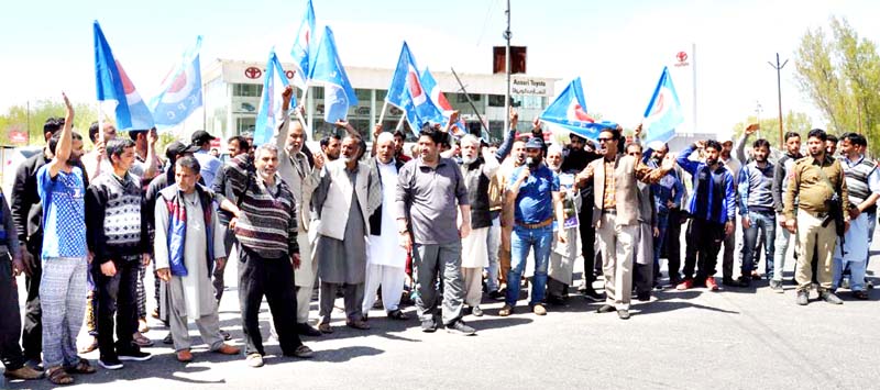 PC candidate for Srinagar Parliament Constituency Irfan Ansari while leading the protests said that by barring the movement of the people of the State two days a week, does the State Administration want to convey that the fundamental rights are not applicable to the State of J&K or that the Administration has the power to suspend these rights at its whim and caprice.