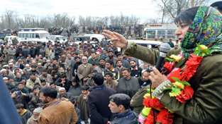 People’s Democratic Party president Mehbooba Mufti addressing party workers during an election rally at South Kashmir’s Anantnag district on Tuesday. —Excelsior/Sajad Dar