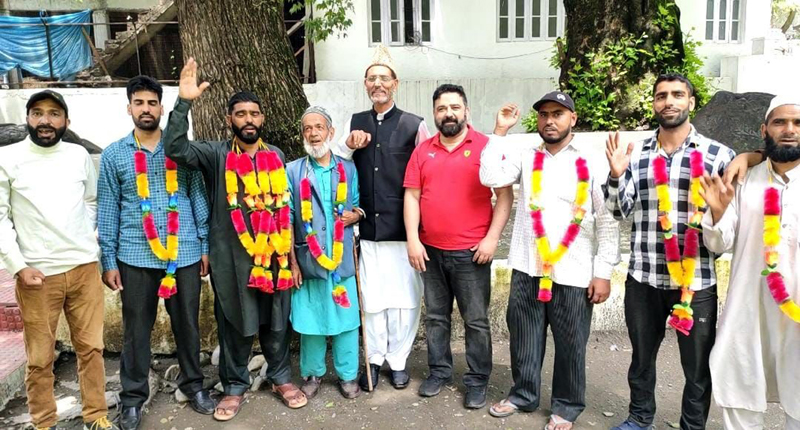 Former NC MLA Ajaz Jan posing with new entrants of the Party in Poonch district.