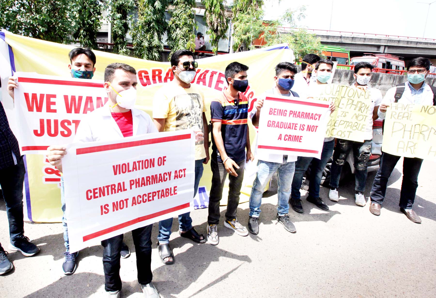 Pharmacy Graduates during a protest demonstration in Jammu. -Excelsior/Rakesh By Daily Excelsior - April 12, 2021 Share FacebookTwitterWhatsAppPinterestLinkedinCopy URLTelegramEmailTumblrReddItPrintKoo Pharmacy Graduates during a protest demonstration in Jammu. -Excelsior/Rakesh Pharmacy Graduates during a protest demonstration in Jammu. -Excelsior/Rakesh Follow our WhatsApp channel