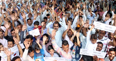 Tanveer alleged that Government failed to keep its promise of releasing salary on recent festivals. He said that Government should immediately release all the pending wages of the daily wagers without any delay. He said during announcement of SRO it was assured that proper wages head will be formed and daily wagers will get regular salaries without any delay but it was just an eye wash. He said that Chief Engineer PHE Jammu on behalf of Chief Secretary had assured to resolve their issue before October 10 but nothing has happened as yet.
