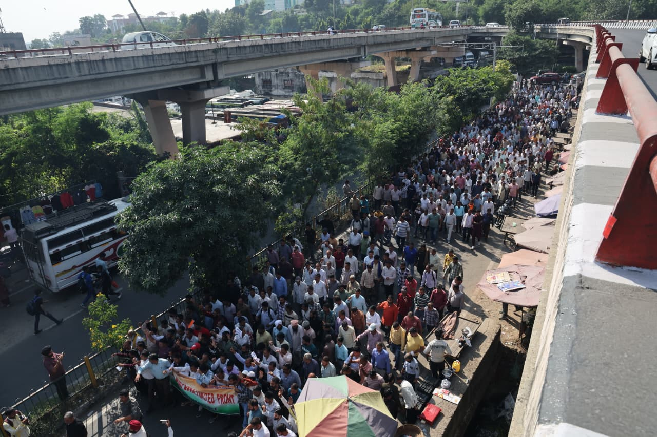 Amid slogans of “We want justice”, “Report ko Assembly mein table karo” and “Daily wagers ko regularise karo”, hundreds of workers sat on a protest dharna at the Jal Shakti office in the city.