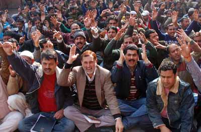 PHE daily wagers staging protest dharna at BC Road in Jammu on Wednesday. -Excelsior/Rakesh By Daily Excelsior - January 17, 2013 Share FacebookTwitterWhatsAppPinterestLinkedinCopy URLTelegramEmailTumblrReddItPrintKoo PHE daily wagers staging protest dharna at BC Road in Jammu on Wednesday. -Excelsior/Rakesh Follow our WhatsApp channel