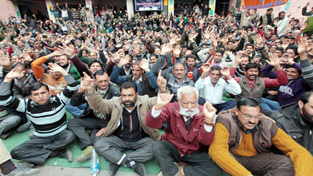 PHE employees and workers protesting in support of their demands on Monday. By Daily Excelsior - March 4, 2014 Share FacebookTwitterWhatsAppPinterestLinkedinCopy URLTelegramEmailTumblrReddItPrintKoo PHE employees and workers protesting in support of their demands on Monday. PHE employees and workers protesting in support of their demands on Monday. Follow our WhatsApp channel