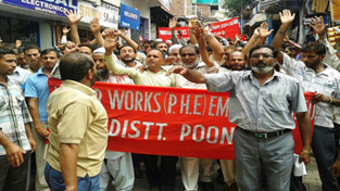 PHE employees holding protest demonstration at Poonch. By Daily Excelsior - October 26, 2014 Share FacebookTwitterWhatsAppPinterestLinkedinCopy URLTelegramEmailTumblrReddItPrintKoo PHE employees holding protest demonstration at Poonch. PHE employees holding protest demonstration at Poonch. Follow our WhatsApp channel