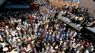 PHE employees holding protest in Srinagar. —Excelsior/Shakeel