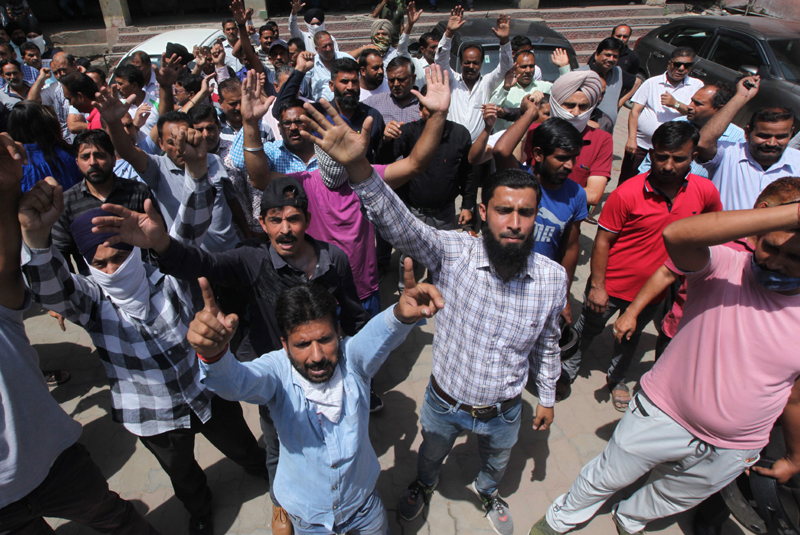 The employees under the banner of Employees United Front assembled outside the office of SE, PHE Mech Urban Circle Jammu in the morning and strated massive protest demonstration. They were shouting slogans in support of their demand and also against the senior officers of the department. They alleged that authorities have failed to release the salary of February, March and April, 2022 in favour of the employees and other temporary workers of four PHE Divisions which have been transferred to Jammu Municipal Corporation.