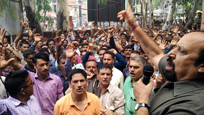 UDHAMPUR, July 17: Water Works (PHE) Employees Association Udhampur held a massive strong protest in PHE Complex here under the chairmanship of Som Nath, district president PHE Employees Association Udhampur and senior vice president of the Association for Jammu province.