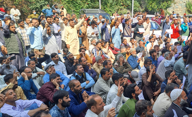 Sajjad Parray, the head of the association, expressed their grievances, stating, “We are here to press for our demands because, for the last two months, our wages have not been released, causing immense suffering to us and our families.”