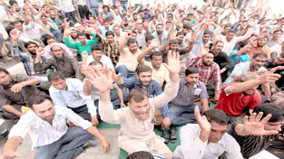PHE workers raising slogans during protest demonstration at Jammu on Monday. -Excelsior/Rakesh By Daily Excelsior - May 19, 2014 Share FacebookTwitterWhatsAppPinterestLinkedinCopy URLTelegramEmailTumblrReddItPrintKoo PHE workers raising slogans during protest demonstration at Jammu on Monday. -Excelsior/Rakesh PHE workers raising slogans during protest demonstration at Jammu on Monday. -Excelsior/Rakesh Follow our WhatsApp channel