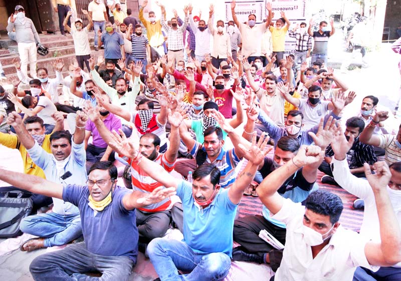 PHE workers staging protest in Jammu on Tuesday. -Excelsior/Rakesh By Daily Excelsior - October 14, 2020 Share FacebookTwitterWhatsAppPinterestLinkedinCopy URLTelegramEmailTumblrReddItPrintKoo PHE workers staging protest in Jammu on Tuesday. -Excelsior/Rakesh PHE workers staging protest in Jammu on Tuesday. -Excelsior/Rakesh Follow our WhatsApp channel