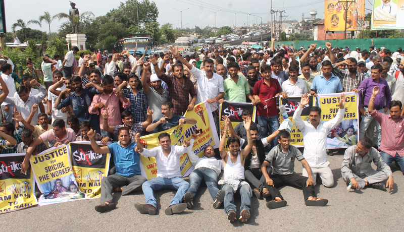 JAMMU, Sept 7: The PHE workers held protest demonstrations and took out massive protest rallies in support of their pending demands in Jammu city and also at various Divisional and Sub Divisional headquarters across the region today.