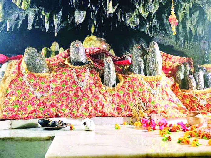 Inside the cave, one can see the Aadi Shakti Mata Pingla besides other goddesses in the shape of Pindies. A stone pot with cooking spoon can also be seen in the cave shrine which is believed to be used by the Aadi Shakti Mata Pingla to cook food for shepherds.