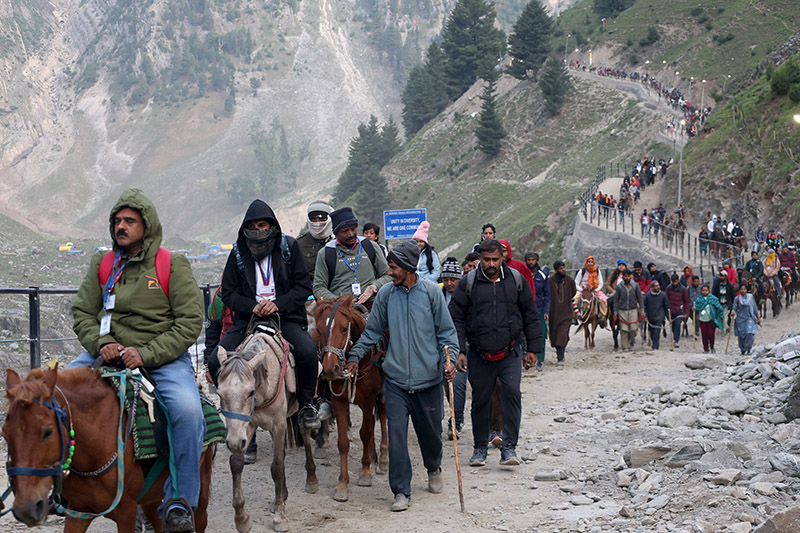 Pilgrims leaving for holy cave from Baltal base camp on Sunday. —Excelsior/Shakeel By Daily Excelsior - July 1, 2024 Share FacebookTwitterWhatsAppPinterestLinkedinCopy URLTelegramEmailTumblrReddItPrintKoo Pilgrims leaving for holy cave from Baltal base camp on Sunday. —Excelsior/Shakeel Follow our WhatsApp channel