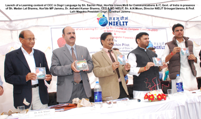 JAMMU, Oct 25: Union Minister of State for Communication and Information Technology Sachin Pilot visited the National Institute of Electronics and Information Technology (NIELIT) Campus, University of Jammu and launched the e-Content of Course in Computer Concepts in Dogri language, here today.