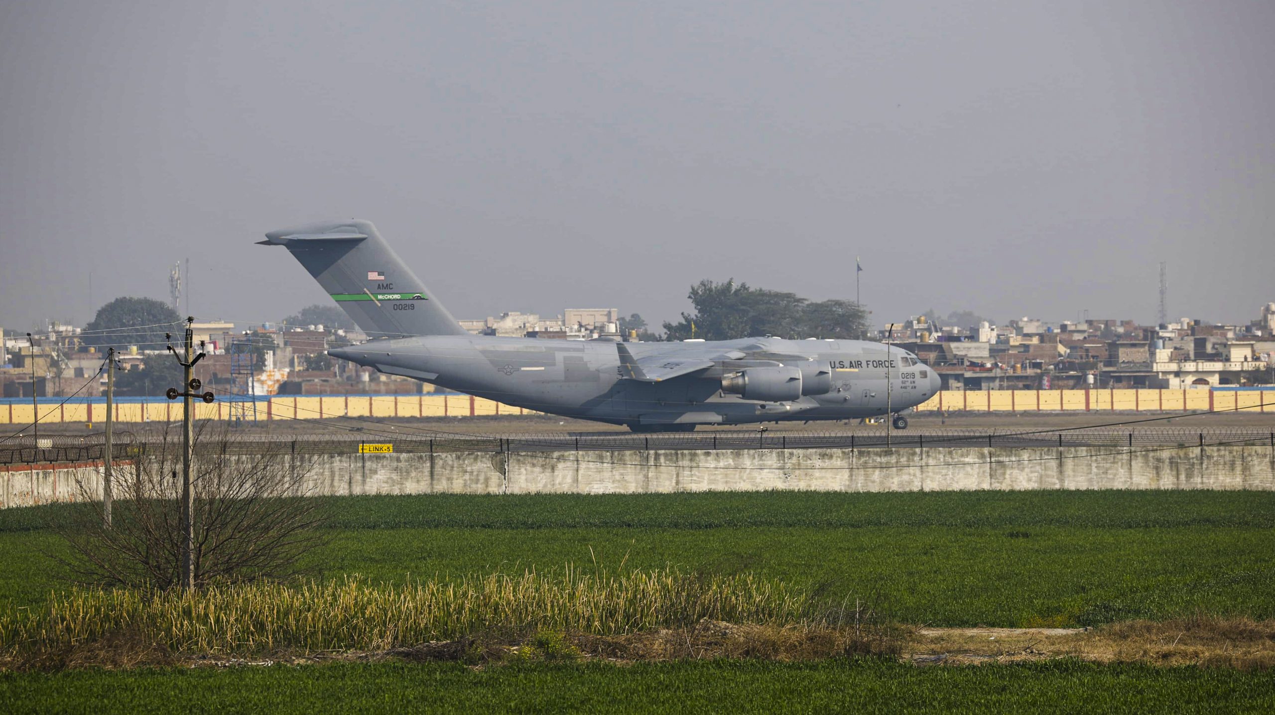 AMRITSAR, Feb 5: A US military aircraft carrying 104 illegal Indian immigrants landed at the Shri Guru Ramdas Ji International Airport here on Wednesday afternoon, sources said.