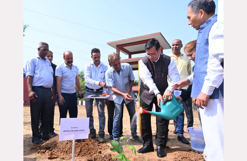 JAMMU, July 11: Under the patronage of Chief Justice, High Court of Jammu and Kashmir and Ladakh, Justice N.Kotiswar Singh and guidance of Judge High Court of Jammu and Kashmir and Ladakh, Justice Tashi Rabstan, a plantation drive was held today in the High Court Complex, Janipur here.